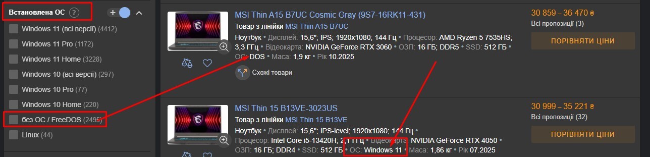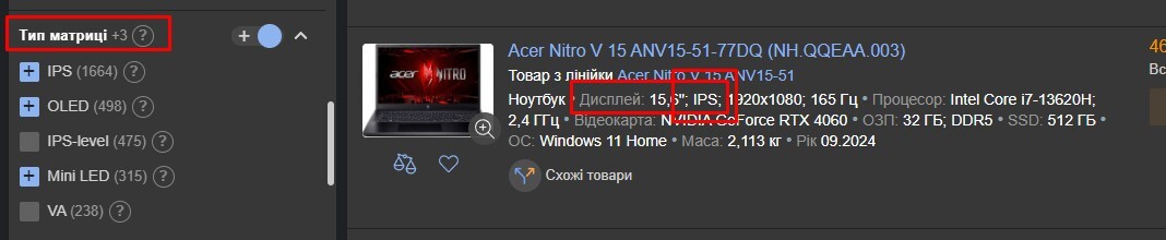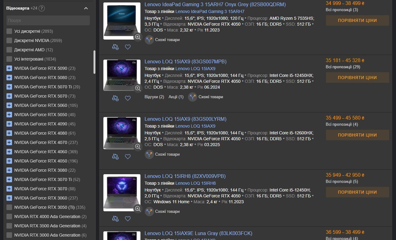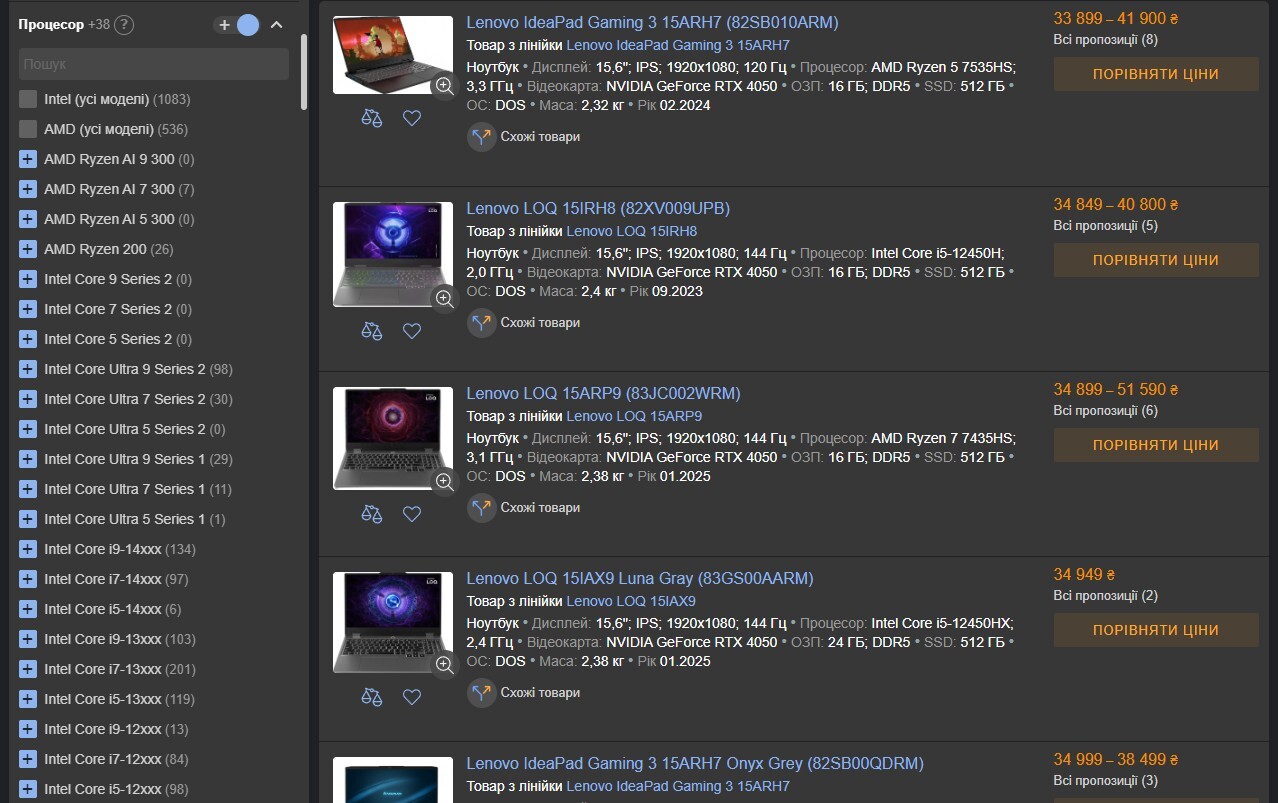 3. Обираємо кілька варіантів, які сподобались і мають кращі характеристики.