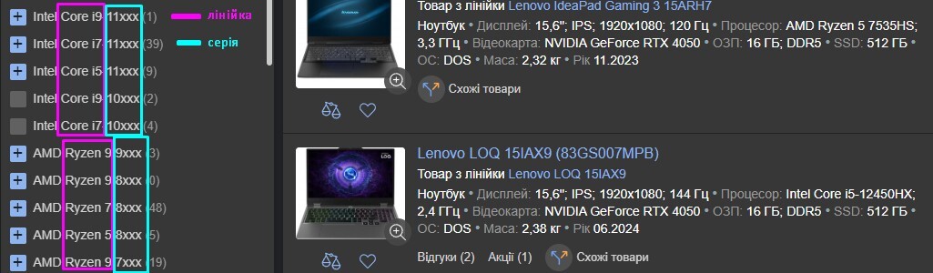 Як зрозуміти де лінійка а де серія процесора - на картинці вище.