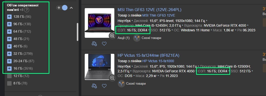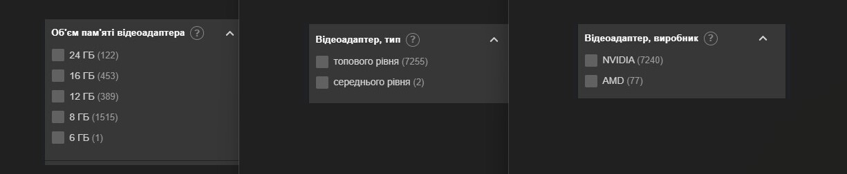 👉Далі одразу ідемо до фільтра по Відеокартах.